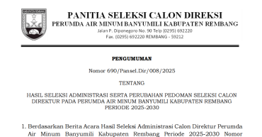 Pemerintah Kabupaten Rembang bersama Dewan Perwakilan Rakyat Daerah (DPRD) Kabupaten Rembang resmi menyepakati Rancangan Kebijakan Umum Anggaran dan Prioritas Plafon Anggaran Sementara (RKUA-PPAS) Tahun Anggaran 2026. Penandatanganan nota kesepakatan dilakukan dalam rapat paripurna di Gedung DPRD Rembang, Kamis (13/11/2025). Nota kesepakatan tersebut ditandatangani oleh Bupati Rembang Harno, Ketua DPRD Abdul Rouf, Wakil Ketua I Bisri […]