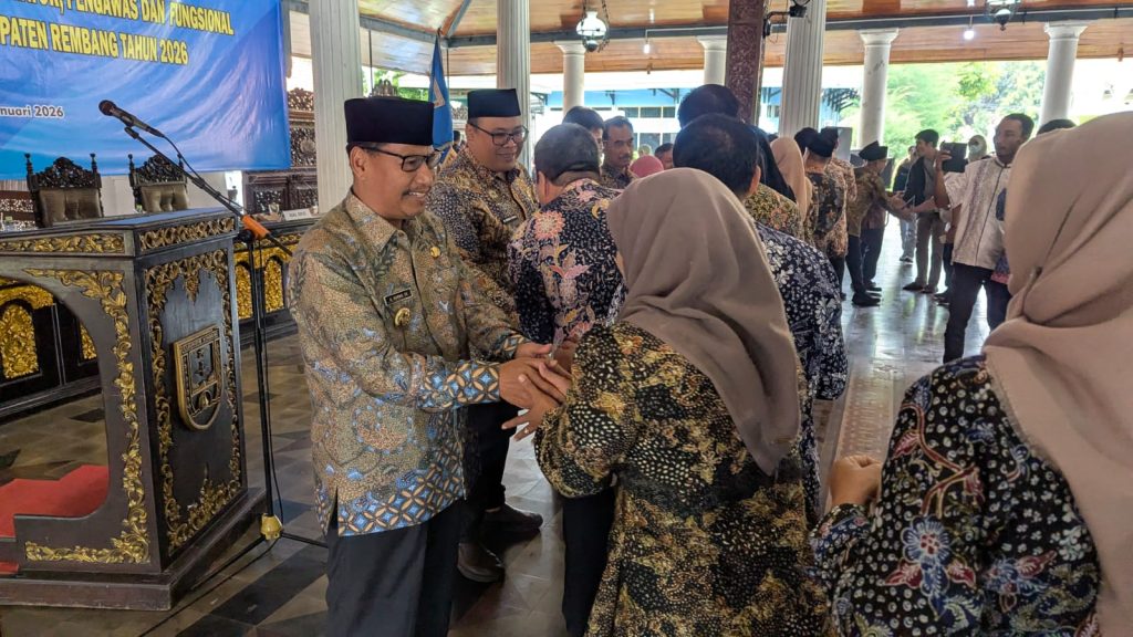 Sebanyak 59 pejabat di lingkungan Pemerintah Kabupaten Rembang resmi dilantik dan diambil sumpah/janjinya oleh Bupati Rembang Harno di Pendopo Museum Kartini, Jumat (9/1). Pelantikan ini merupakan bagian dari dinamika organisasi sekaligus upaya penyegaran birokrasi untuk meningkatkan kinerja pemerintahan.