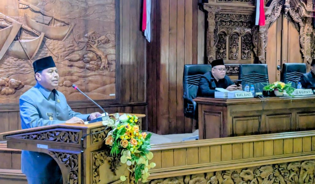 Bupati Rembang, Harno, menyampaikan Laporan Keterangan Pertanggungjawaban (LKPJ) akhir Tahun Anggaran 2025 dalam rapat paripurna DPRD Kabupaten Rembang, Selasa (31/3).