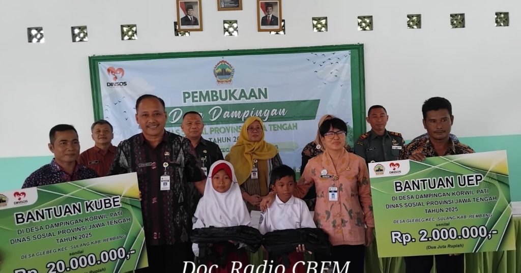 Desa Glebeg, Kecamatan Sulang, resmi menjadi desa dampingan Dinas Sosial (Dinsos) Provinsi Jawa Tengah. Kegiatan pembukaan desa dampingan Koordinator Wilayah (Korwil) Pati Dinsos Provinsi Jawa Tengah tahun 2025 digelar di Balai Desa Glebeg, Selasa (18/2).