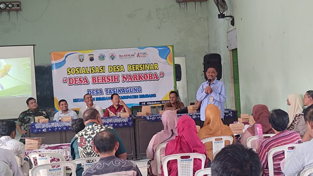 Salah satu langkah nyata yang dilakukan adalah kegiatan sosialisasi Desa Bersinar yang digelar di Balai Desa Tasikagung, Kecamatan Rembang, pada Kamis (16/10). Kegiatan ini merupakan tindak lanjut dari arahan Presiden RI sebagaimana tertuang dalam Instruksi Presiden Nomor 2 Tahun 2020 tentang Rencana Aksi Nasional Pencegahan dan Pemberantasan Penyalahgunaan serta Peredaran Gelap Narkotika dan Prekursor Narkotika.