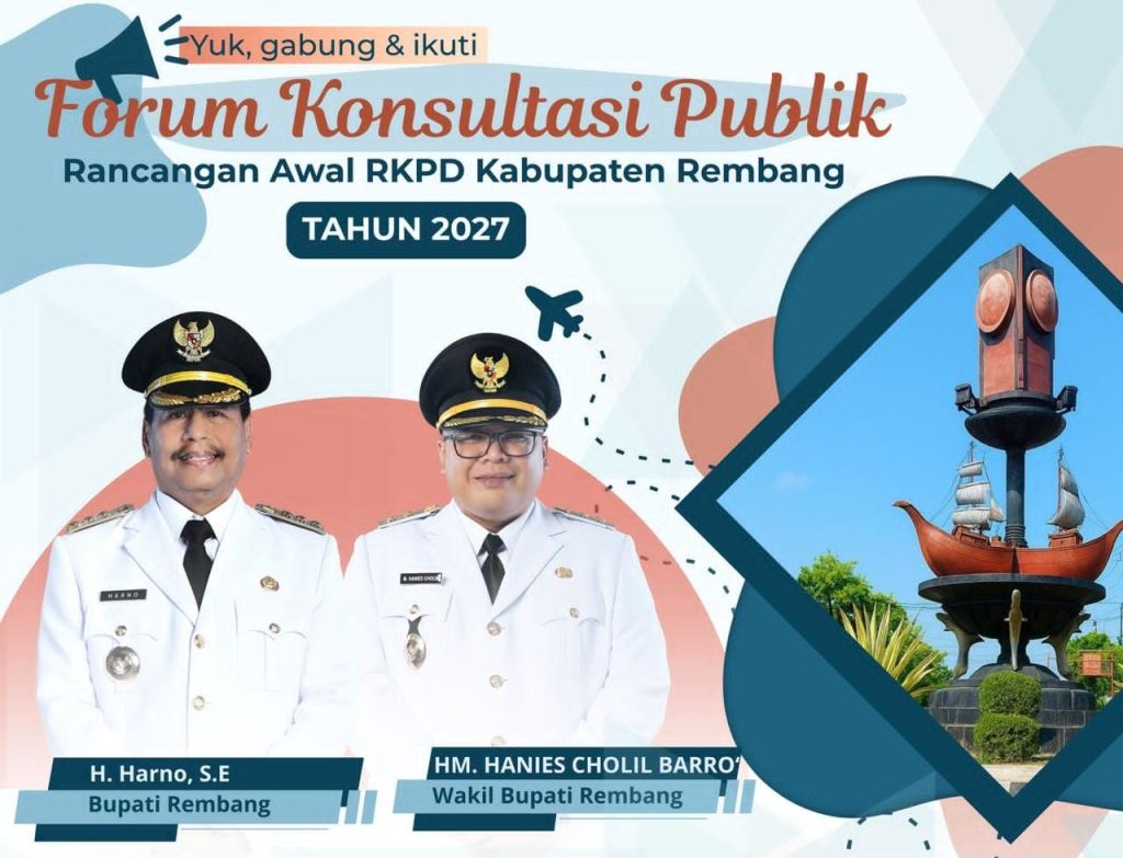 Pemerintah Kabupaten Rembang akan menggelar Forum Konsultasi Publik (FKP) Rancangan Awal Rencana Kerja Pemerintah Daerah (RKPD) Tahun 2027 pada 29 Januari 2026. Forum ini menjadi tahapan penting dalam proses perencanaan pembangunan daerah, dengan fokus utama pada penguatan perekonomian daerah dan peningkatan kualitas sumber daya manusia (SDM).