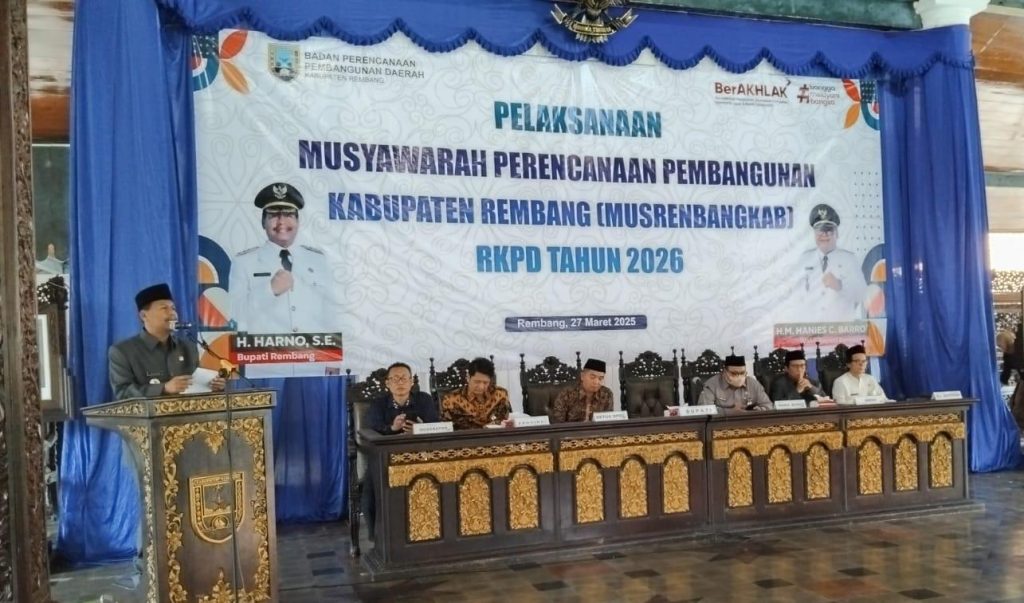 Pemerintah Kabupaten Rembang akan menggelar Musyawarah Perencanaan Pembangunan Kabupaten (Musrenbangkab) dalam rangka penyusunan Rencana Kerja Pemerintah Daerah (RKPD) Tahun 2027 di Ruang Sidang Paripurna DPRD Rembang pada Jumat (27/3). Forum ini menjadi momentum penting untuk menyerap aspirasi sekaligus menyelaraskan arah pembangunan daerah.