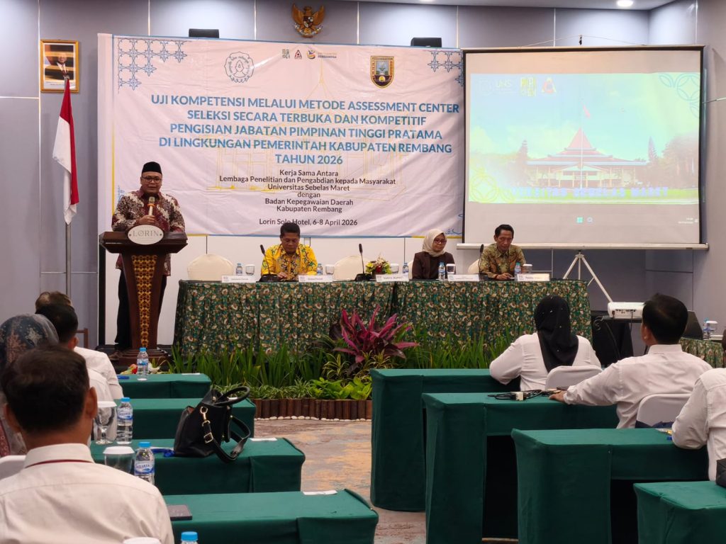 Pelaksana Harian (Plh) Bupati Rembang, Mochamad Hanies Cholil Barro’, menegaskan pentingnya kompetensi dan kejujuran dalam setiap proses seleksi. Hal itu disampaikan saat membuka kegiatan assessment center di LORIN Solo Hotel, Senin (6/4/2026).