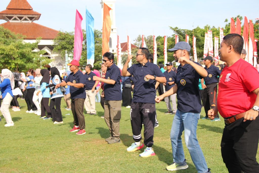 “Sehat itu modal kita, sehat lahir dan batin. Kita semua sebagai pelayan masyarakat bisa melayani dengan maksimal,” ujar Bupati di hadapan ratusan ASN Pemerintah Kabupaten Rembang yang memenuhi area alun-alun.