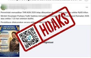 Penjelasan: Beredar sebuah unggahan di media sosial Facebook berisi tautan yang diklaim merupakan tautan pendaftaran THR ASN 2026 dari pemerintah bagi para Aparatur Sipil Negara (ASN) 2026 yang dibayarkan dengan total anggaran sekitar Rp55 triliun. Faktanya, klaim adanya tautan untuk mendaftar THR ASN 2026 adalah hoaks. Dilansir dari tirto.id, tautan tersebut mengarah ke laman tidak resmi […]
