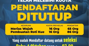 Balai Latihan Kerja (BLK) Kabupaten Rembang resmi membuka pendaftaran pelatihan kompetensi merias wajah dan pembuatan kue pada Senin (29/9/2025). Hanya dalam satu hari, pendaftaran langsung ditutup karena kuota sudah terpenuhi. Kepala BLK Rembang, Diah Kurnianingrum, menjelaskan bahwa kedua kejuruan ini selalu diminati masyarakat setiap tahun. Pelatihan rias wajah dan tata boga pembuatan kue kerap dibanjiri […]