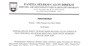 Pengumuman Seleksi Calon Direktur Perumda Air Minum Banyumili Kabupaten Rembang Periode 2025-2030